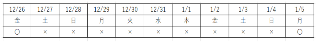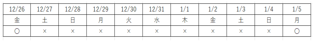 休業日:2025年12月27日(土)~ 2026年1月4日(日)